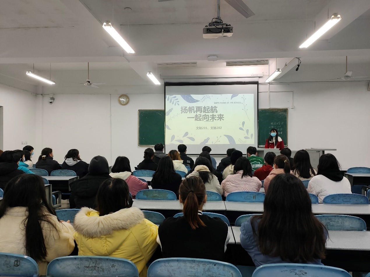 此次班会主题为“扬帆再起航 一起向未来”,共分为五个部分:思想引领、疫情防控、阳光心理、安全教育、学风培育。主题班会上,各班辅导员分别向大家介绍了2022年北京冬奥会开展的盛况,接着向大家讲述了阳光心理的建设方法,然后将疫情防控和安全教育相联系,强调同学们做好疫情个人防护、宿舍内勤开窗通风、谨防电信诈骗等,部分班级同学还紧紧围绕“分享寒假读的一本书”“班风、学风建设的内涵是什么”等展开了主题发言和讨论。