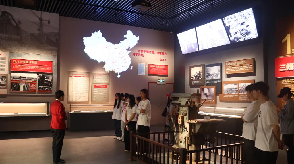 在讲解员的带领下,师生们依次参观了两弹历程馆、邓稼先故居以及防空洞遗址等多个展区。通过展示的200余件珍贵文物、历史照片和全息影像资料,大家深入了解到钱学森、王淦昌等科学家隐姓埋名,在艰苦环境中突破核武器技术难关的奋斗历程。全体预备党员在邓稼先铜像前,面对党旗庄重宣誓;新团员则在团旗下重温了入团誓言,铿锵有力的声音在红砖墙间回荡。