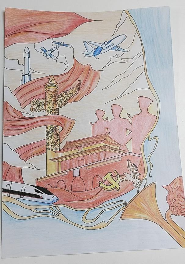 宣传画创作活动中,同学们充分释放艺术才华与创造力,将对党的深厚情感倾注于笔端。作品以绚丽色彩勾勒党的光辉历程,用独特构图展现国家发展成就:有的描绘革命年代的峥嵘岁月,有的定格新时代的奋斗场景,有的抒发对民族复兴的美好憧憬。一幅幅主题鲜明、内涵丰富的作品,不仅彰显了青年学子的艺术素养,更传递出新时代青少年传承红色基因、赓续精神血脉的坚定决心。