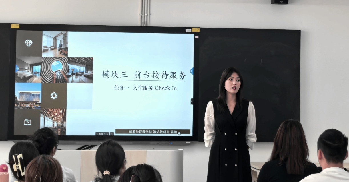 课堂上,陈阳老师紧扣教学目标,深度融合多元化教学手段。通过生动的课堂演示、启发性的小组研讨以及情境模拟等多种教学形式,将“入住服务”的知识点与实操技能进行了有效串联,营造了师生高效互动、员工深度参与的积极氛围,生动诠释了“高效课堂”的理念,充分激发了员工的学习兴趣与潜能。其清晰的教学思路、创新的教学设计及富有感染力的授课风格,赢得了观摩师生的一致认可与好评。