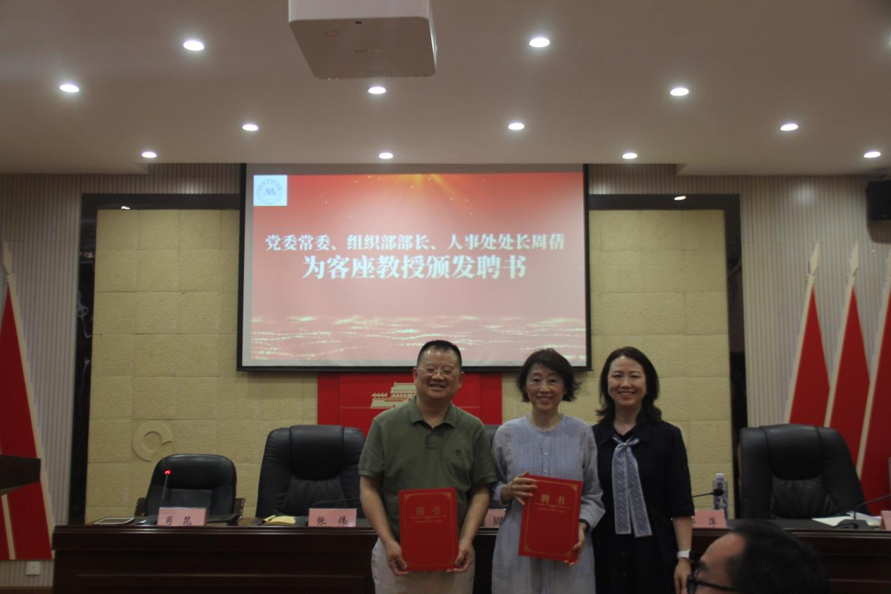 随后,公司党总支书记曹艳宣读了《关于聘任张伟、邱萍同志为客座教授的决定》。周蒨部长为两位客座教授颁发了聘书。