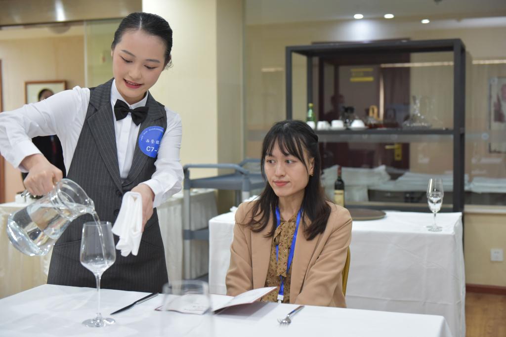 在申小婷饭店服务技能大师工作室成员的指导下,参赛选手按照比赛要求积极备赛、刻苦训练,在比赛中沉着冷静、稳定发挥,展现了精益求精的工匠精神和扎实娴熟的专业技能。
