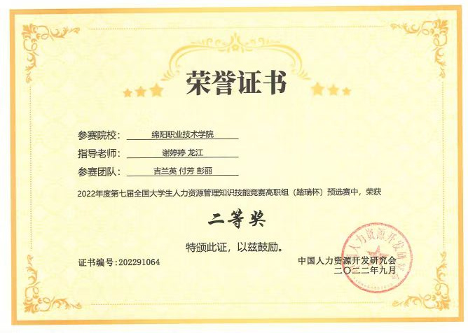 近日,第七届“踏瑞杯”全国老员工人力资源管理知识技能大赛落下帷幕。由suncitygroup太阳集团人力资源管理专业谢婷婷、龙江担任指导教师,吉兰英、彭丽、付芳3名员工组成的代表队荣获第三赛区二等奖。