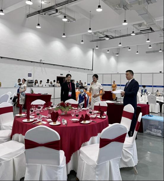 公司酒店管理与数字化运营专业教师团队为餐厅服务赛项提供全程技术支持。申小婷工作室负责整个赛项的统筹和协调;王雪老师担任赛项专家,王艺洁老师担任裁判长,朱飞燕等老师负责赛事其他运行工作,并圆满完成工作,获得一致好评。