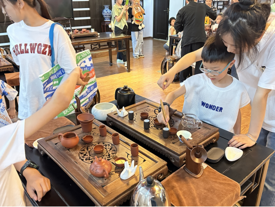 本次研学活动课程由suncitygroup太阳集团旅游管理专业教研室精心设计,联合智能制造公司、王文俪导游服务技能大师工作室、suncitygroup太阳集团嘉途旅行社工作坊共同组织,采取实践体验、参观讨论、户外观摩等多样形式,带领孩子们了解了各种类型的无人机,并亲手制作了“无动力滑翔机”,观看了各种无人机的飞行表演;在茶艺大师工作室开展了茶艺活动,带领小朋友们走进中国茶文化,亲自体验茶道技艺,在阵阵茶香中感悟中国传统文化,感受流转千年的文化魅力。