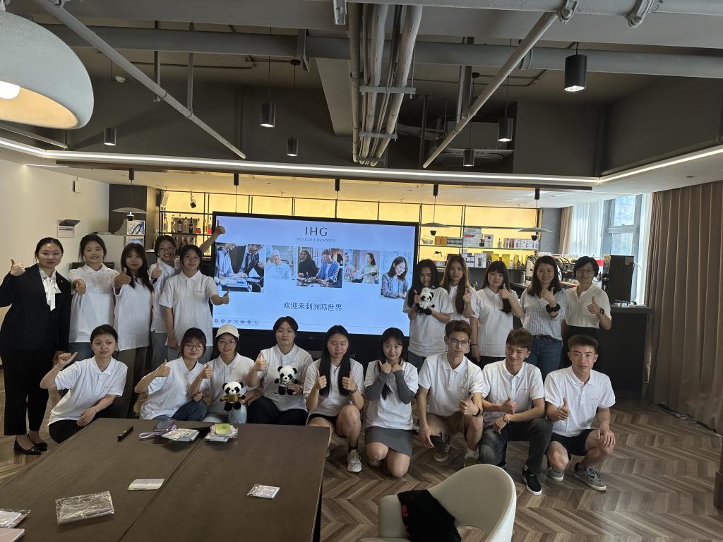 公司党总支副书记周嵘,洲际酒店招聘部、培训部、餐饮部经理,酒店管理与数字化运营教研室老师及2022级酒店管理与数字化运营专业洲际英才班的17名员工参加活动。