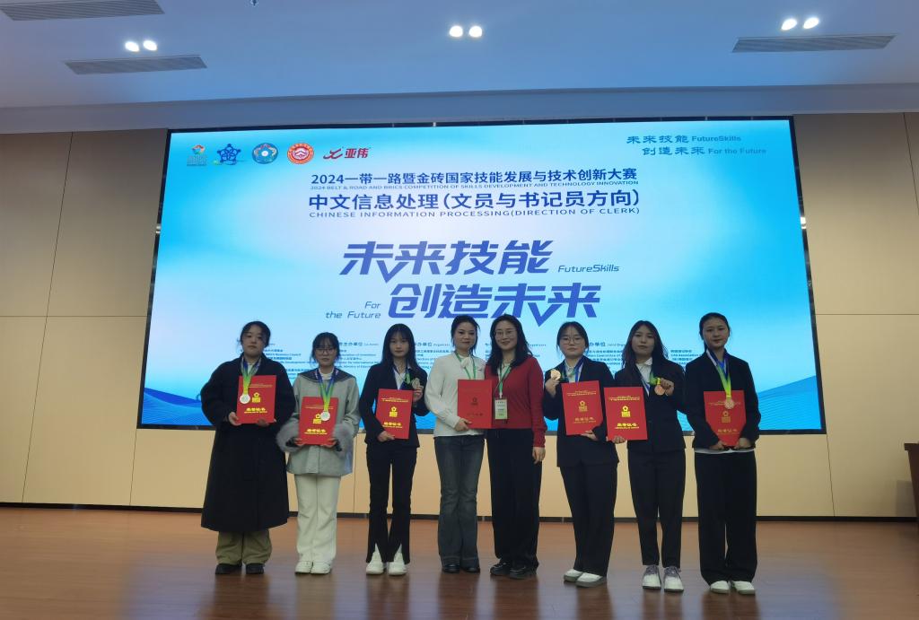 3月25日至28日,2024—2025年“一带一路”暨金砖国家技能发展与技术创新大赛“中文信息处理(文员与书记员方向)”赛项决赛在武汉警官职业公司落下帷幕。公司行政管理与现代文秘专业代表队凭借过硬实力,从全国53所高校106支队伍及韩国参赛队中脱颖而出,斩获团队二等奖、三等奖,公司荣获优秀组织奖,指导教师何丹青、陈玥君获评“优秀指导教师”称号。