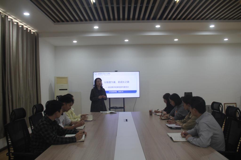 会上,周蒨向与会人员阐明此次培训的重要性,她指出,规章制度是公司规范管理、保障教学科研有序开展、推动高质量发展的“基石”,更是新教师明确职业边界、规范职业行为、实现快速成长的“指南”。对新进教师而言,系统学习规章制度是落实“立德树人” 根本任务的必然要求,也是快速融入公司环境、提升岗位胜任力的关键,能帮助新教师在职业起步阶段树立规矩意识与责任意识。